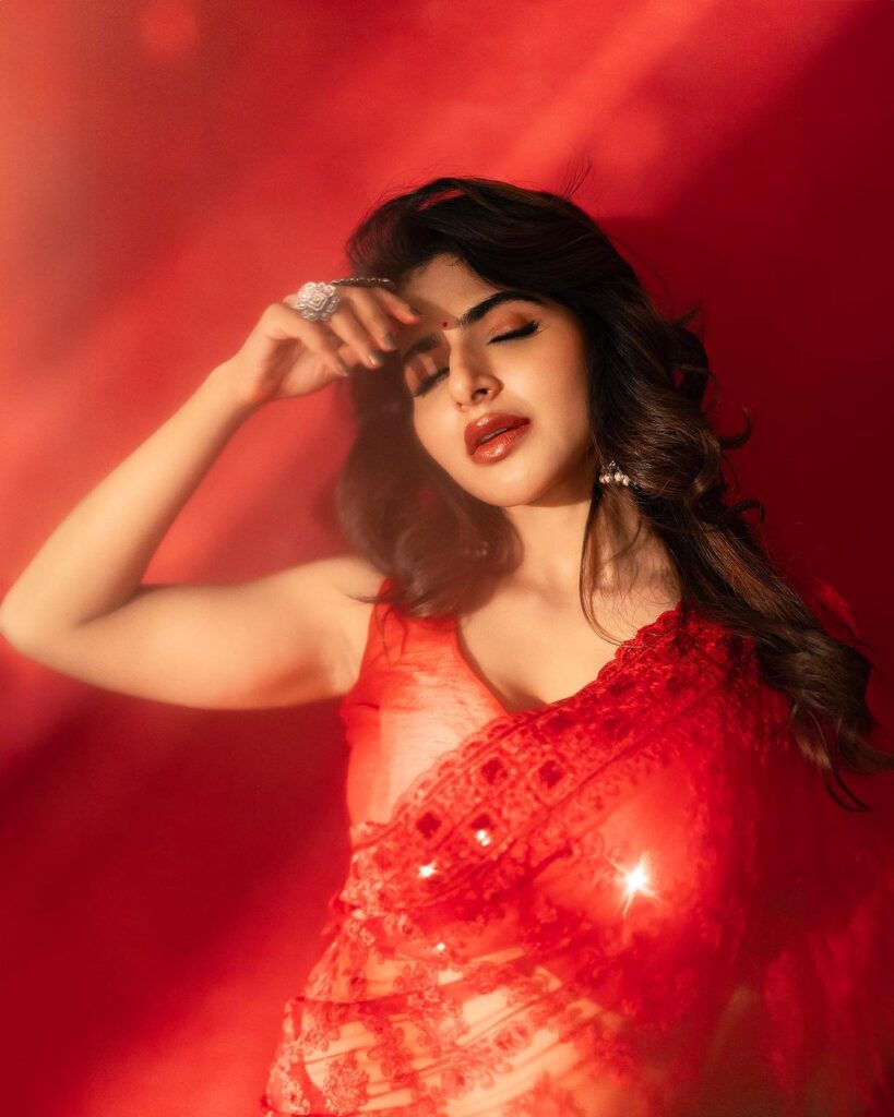 கண்ணாடி போல அப்பட்டமாகக் காட்டும் ட்ரன்ஸ்பரண்ட் சேலையில் போஸ் கொடுத்த ஐஸ்வர்யா மேனன்!