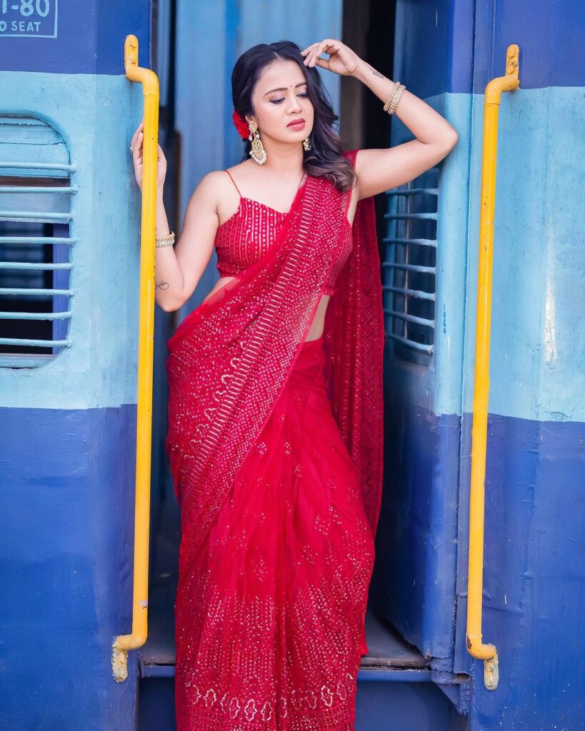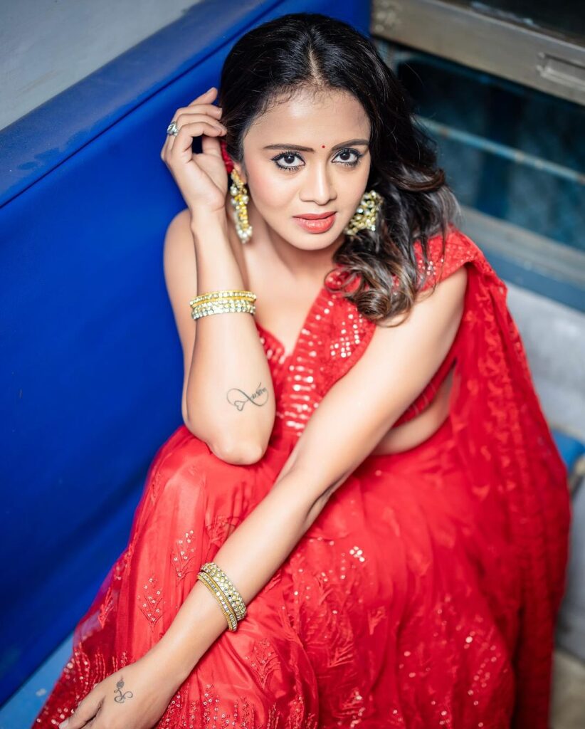இந்நிலையில் சமூகவலைதளங்களில் அ வர் வெளியிடும் புகைப்படங்கள் இணையத்தில் வைரல் ஆகி வருகின்றன. அந்த வகையில் இப்போது அழகான சேலை மற்றும் ஸ்லீவ்லெஸ் ஜாக்கெட் அணிந்து வெளியிட்டுள்ள போட்டோஷூட் புகைப்படங்கள் இணையத்தில் வைரல் ஆகி வருகின்றன.