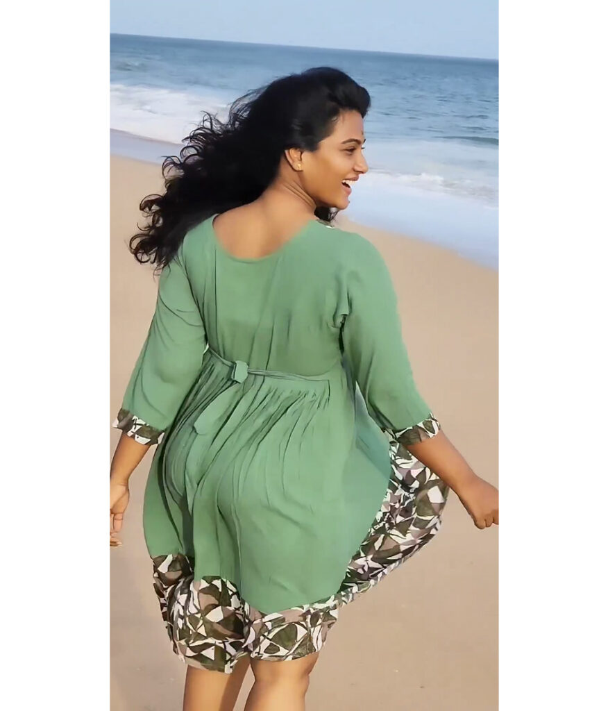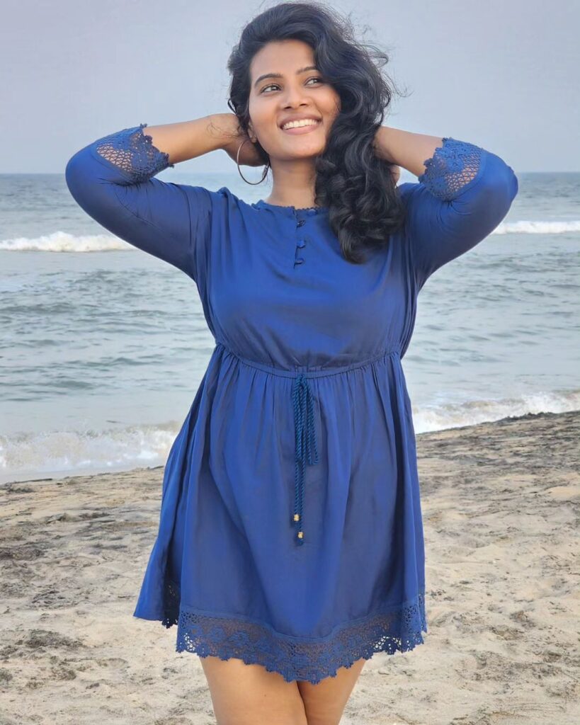 வழக்கமாக புடவை அல்லது டிரடிஷனலான உடைகளை அணிந்து பதிவிட்டு வரும் அவர் இப்போது மாடர்ன் ரூட்டுக்கு மாறியுள்ளார். அந்த வகையில் மினிஸ்கர்ட் உடையணிந்து பீச்சில் விளையாடும் ஜாலியான போட்டோக்களைப் பகிர, அது இணையத்தில் வைரல் ஆகி வருகிறது.