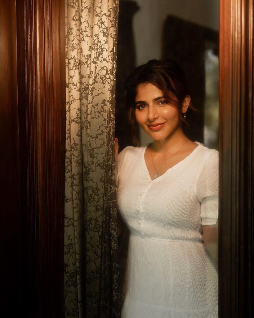 டிரான்ஸ்பரண்ட் வெள்ளை டிரஸ்ஸில் சுத்தி சுத்தி போஸ் கொடுத்த ஐஸ்வர்யா மேனன்!