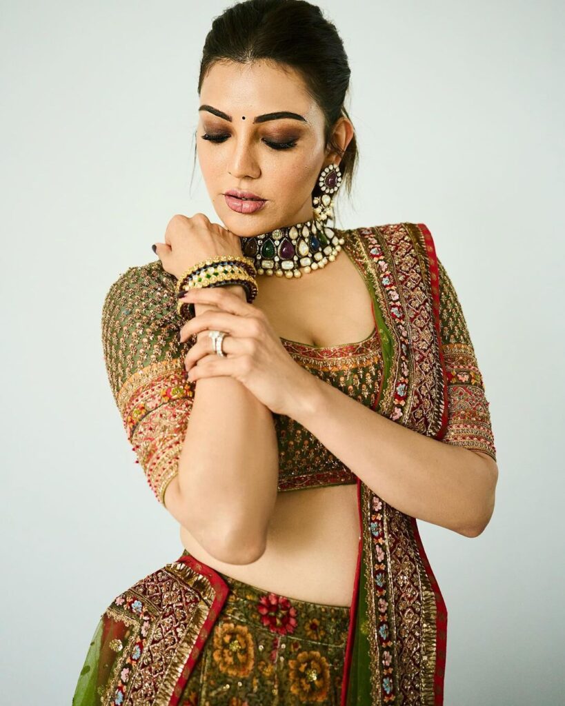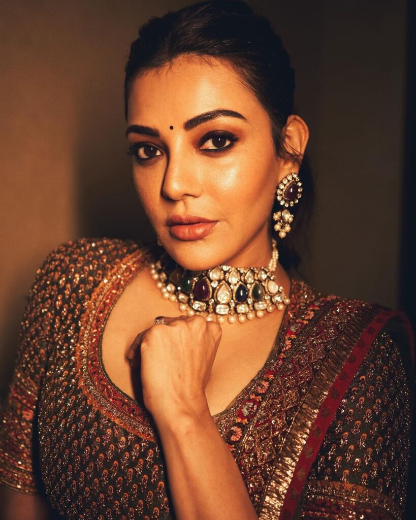 லோ நெக் ட்ரஸ்ஸில் நெஞ்சுக்குழி அழகு தெரிய கார்ஜியஸ் லுக்கில் காஜல் அகர்வால்!