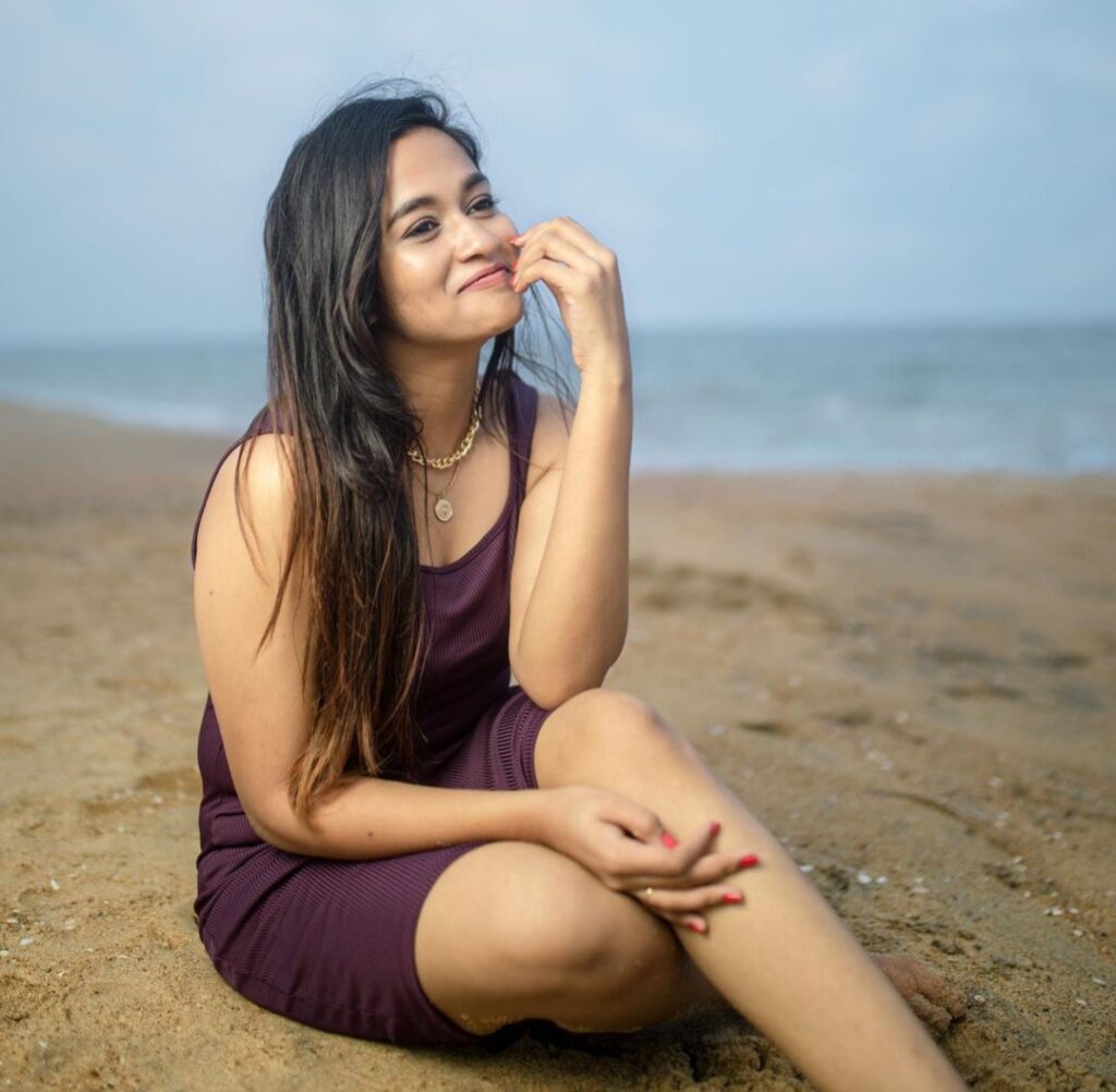 இந்நிலையில் இப்போது அவர் கடற்கரையில் குட்டியான ட்ரஸ் அணிந்து ஜாலியாக அமர்ந்திருக்கும் புகைப்படங்கள் இணையத்தில் வைரல் ஆகி வருகின்றன.