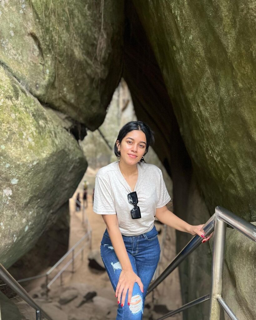 Home > Cinema > ரிஸ்க் எல்லாம் ரஸ்க் சாப்புட்ற மாரி… டிஷர்ட்டில் அப்பட்டமாக தெரிய போஸ் கொடுத்த மிர்னாளினி ரவி!