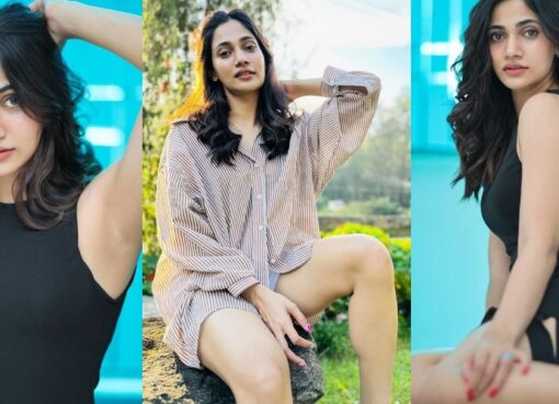 தொடையை அதுவரைக் காட்டும் மினி ஸ்கர்ட் உடையில் உயரமான இடத்தில் இருந்து போஸ் கொடுத்த நிமிஷா!