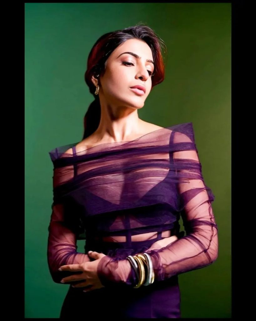 முன்னழகை அதுவரைக் காட்டும் மெல்லிய கண்ணாடி போன்ற ட்ரஸ்ஸில் சமந்தாவின் போட்டோஷூட்!