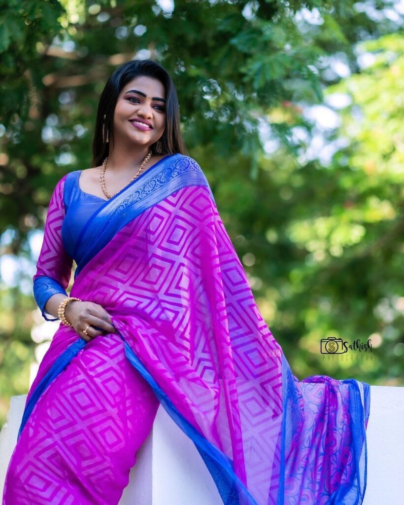 அதன் பிறகு பட வாய்ப்புகள் எதுவும் இல்லாததால் வரிசையாக சேலையில் போட்டோ ஷூட் நடத்தி புகைப்படங்களை பதிவிட்டு வருகிறார் இந்நிலையில் இப்போத அவர் வெளியிட்டுள்ள புகைப்படங்கள் ரசிகர்களைக் கவர்ந்துள்ளன.