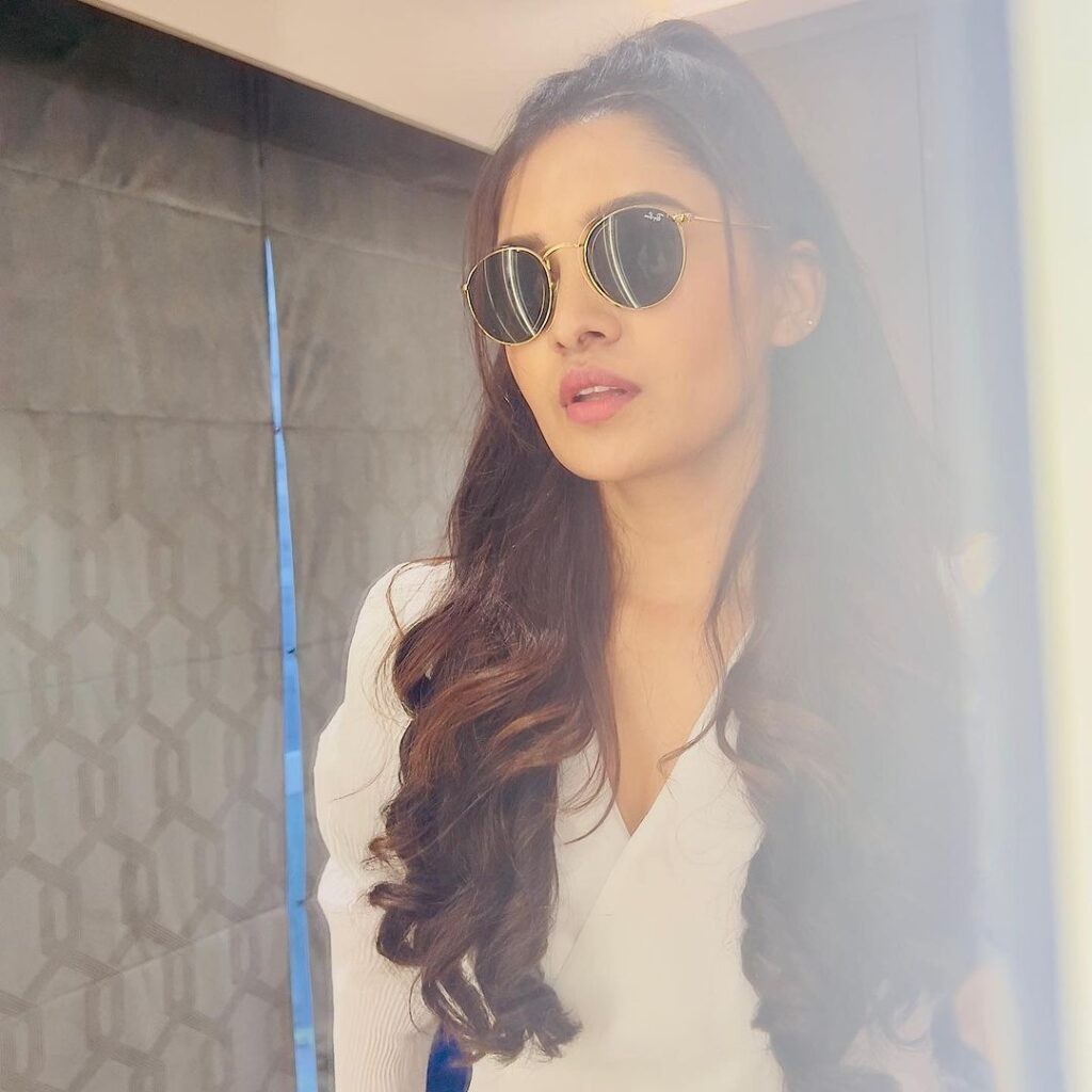 கண்ணாடி போன்ற மெல்லிய சேலையில் அப்பட்டமாக தெரியும் முன்னழகு… வாணி போஜன் கிளிக்ஸ்!