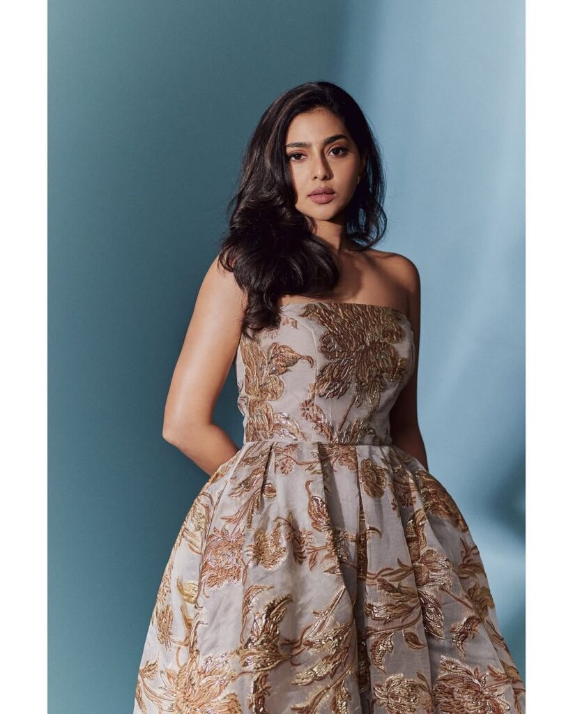 ஸ்ட்ராப்லெஸ் ஆடையில் சுண்டியிழுக்கும் லுக்கில் போஸ் கொடுத்த ஐஸ்வர்யா லஷ்மி!