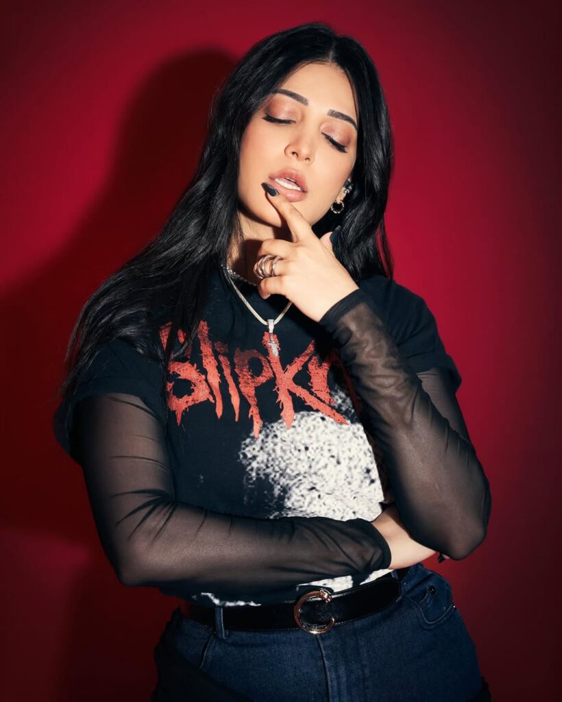 இவர் தனுஷ் நடிப்பில் வெளியான 3 படத்தில் நடித்திருந்தார்.இந்த திரைப்படம் மிகப்பெரிய வெற்றியை பெற்றது.பின்னர் பூஜை , புலி, வேதாளம் போன்ற படங்களில் நடித்துள்ளார். அதற்கு பிறகு தமிழில் பட வாய்ப்புகள் இல்லாததால் தெலுங்கு மற்றும் ஹிந்தி படங்களில் நடித்து வந்தார்.